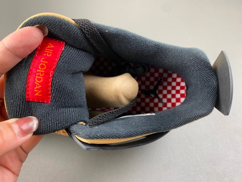 🔥 Stand out in style with these Air Jordan 4 sneakers. Featuring a sleek beige base with bold black and red accents, and a crisp white sole, these kicks are perfect for collectors and sneakerheads alike.